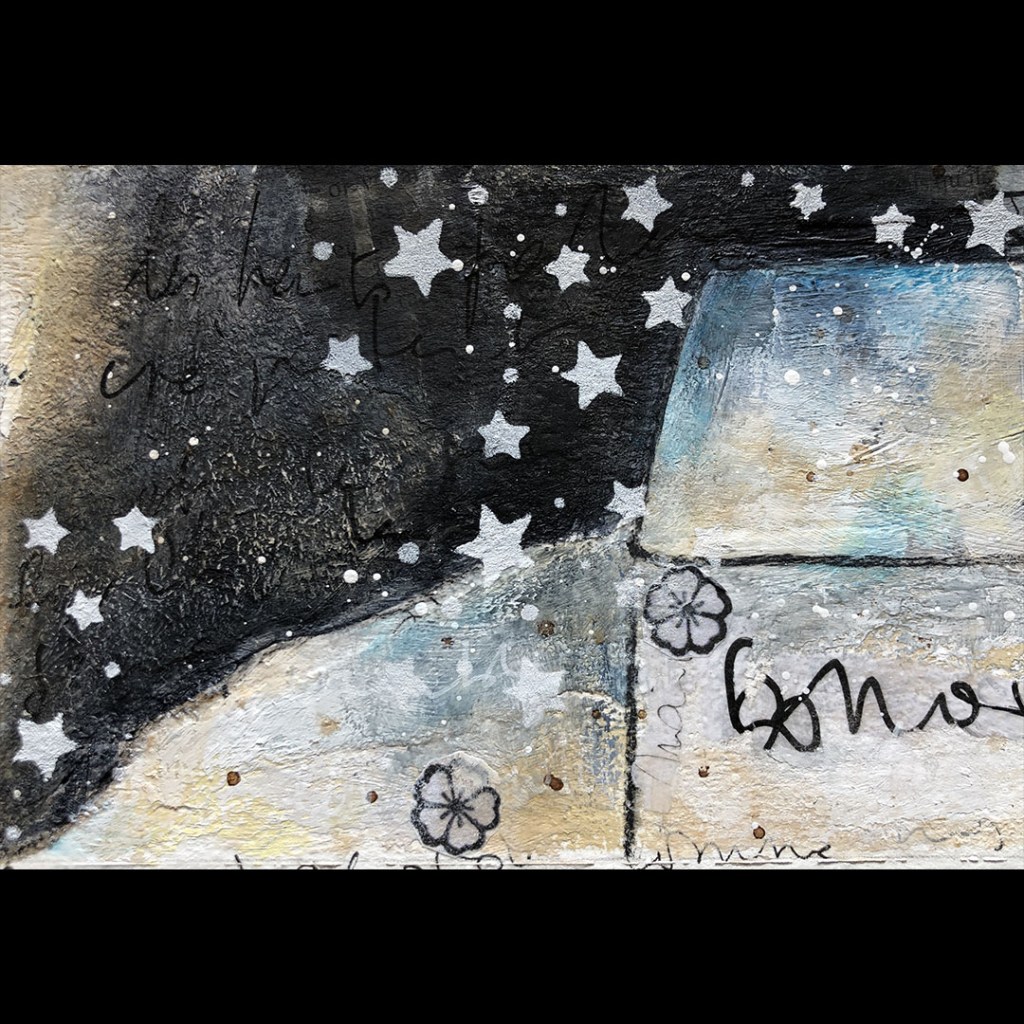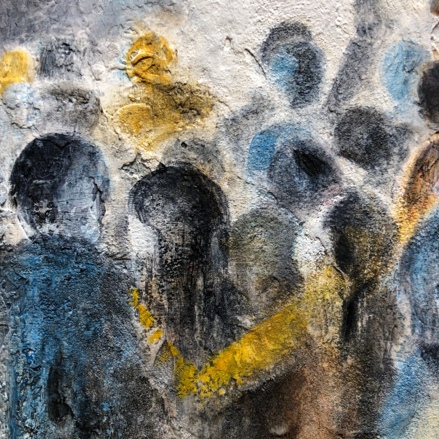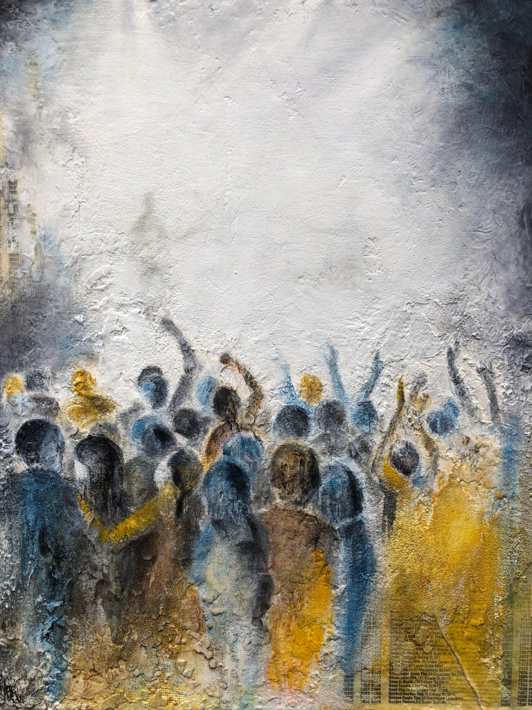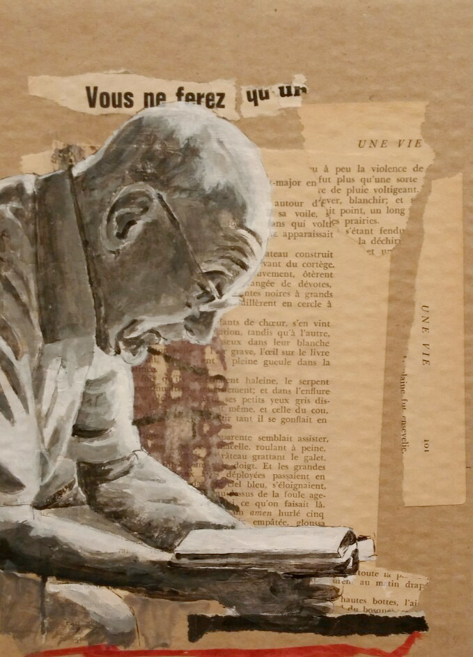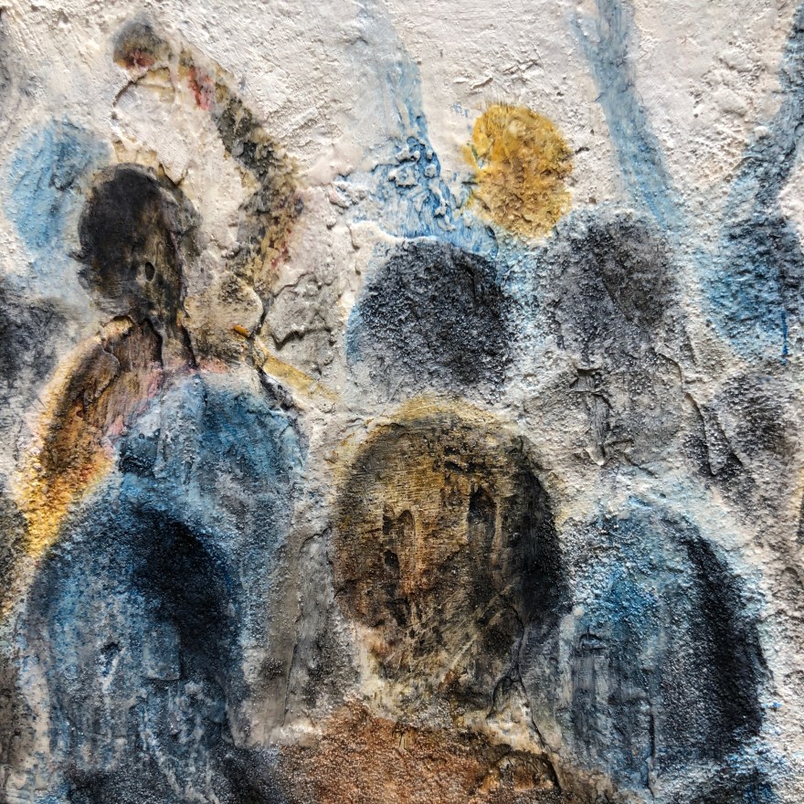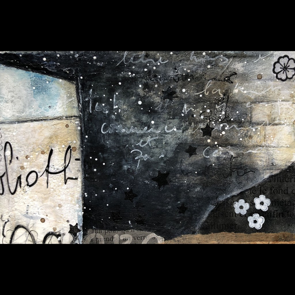 Mixed media sur toile (collage, médium, acrylique, huile)